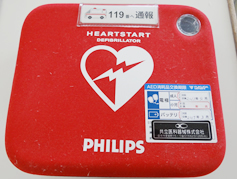 AED(自動体外式除細動器)とは、心臓がけいれんし血液を流すポンプ機能を失った状態(心室細動)になった心臓に対して、電気ショックを与え、正常なリズムに戻すための医療機器です。万一の場合患者さんの安全を確保する為、設置しております。
